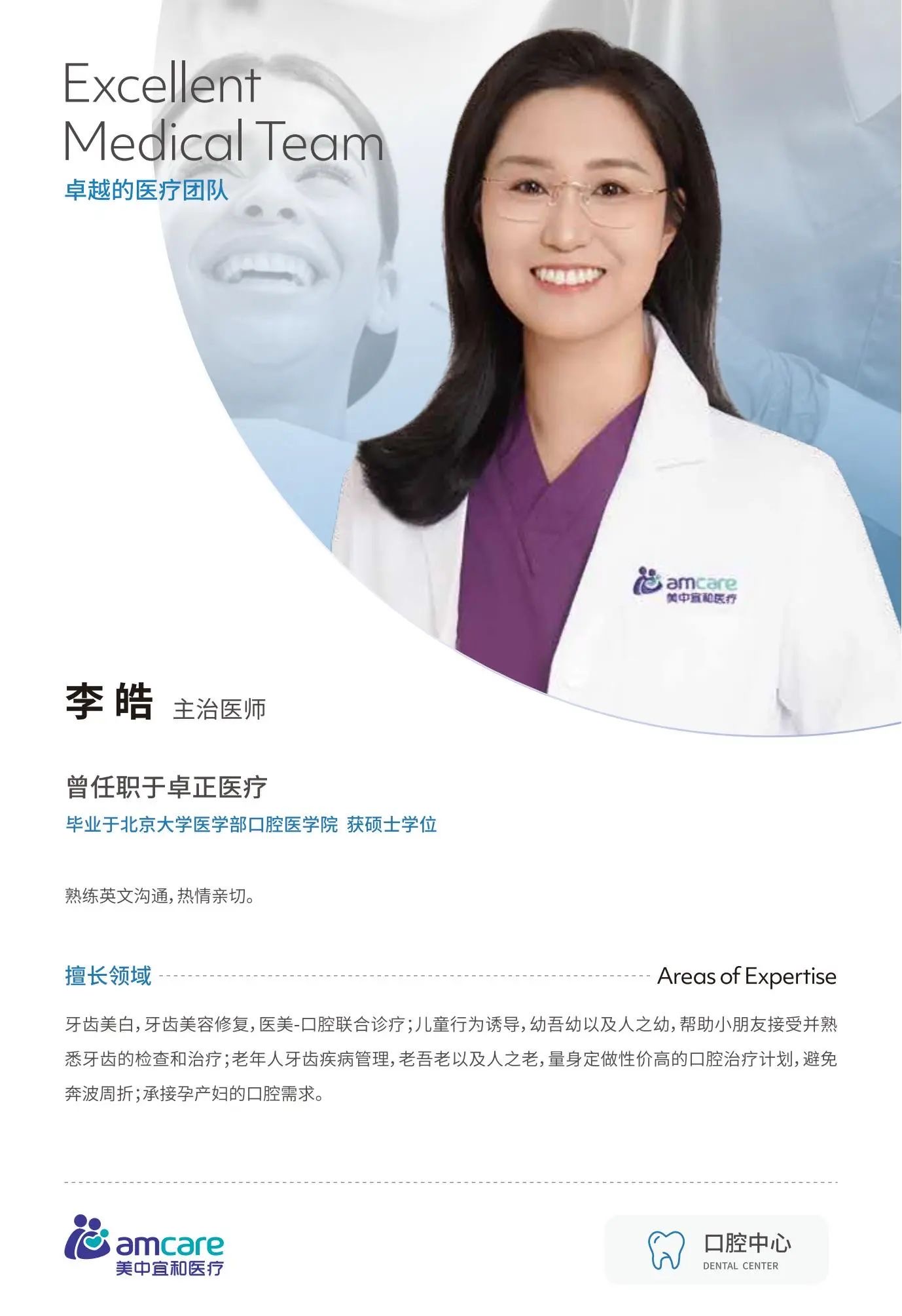 業務(wu)範圍:口腔種植、舒适化潔牙、補牙、鑲牙、拔牙、牙周病治療、牙齒外傷、颌面部(bu)小(xiǎo)腫物(wù)治療、牙齒矯正、牙齒美容。