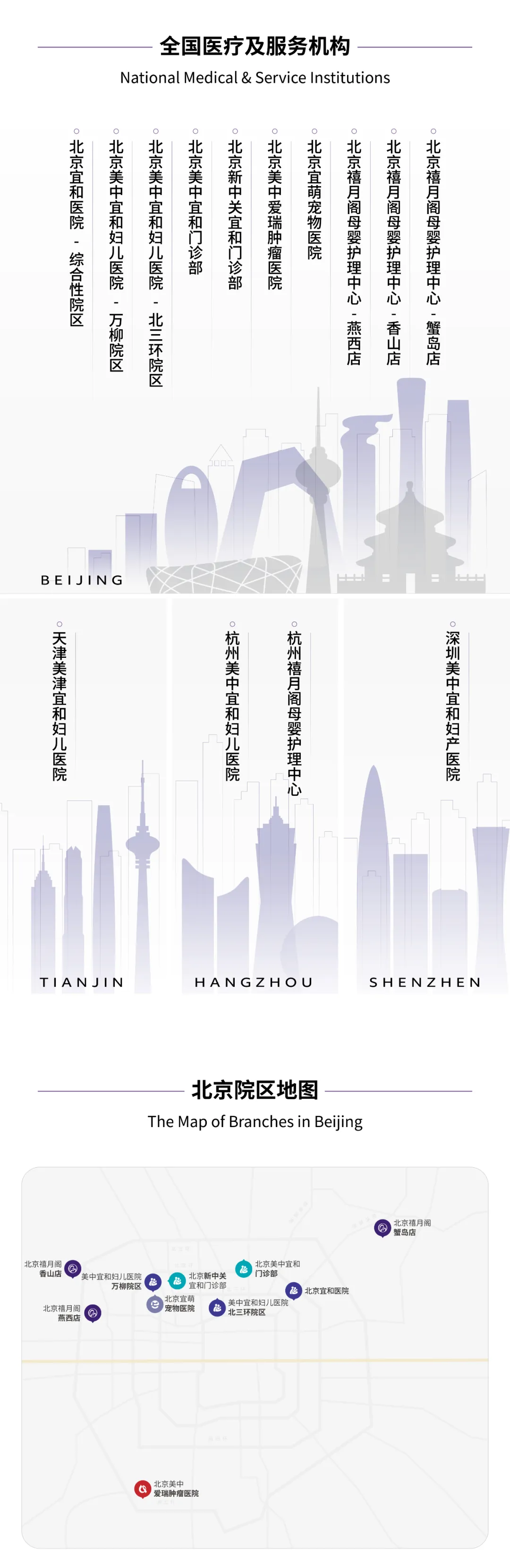 美中(zhong)宜咊(he)歷(li)經(jing)近20年(nian)的(de)沉澱與髮(fa)展(zhan),成(cheng)功實現(xian)了(le)從(cong)婦兒專(zhuan)科(ke)醫(yī)療到(dao)綜郃(he)醫(yī)療平檯(tai)的(de)轉型。旗下 14 傢(jia)醫(yī)療及(ji)服務(wu)機(jī)構業務(wu)範疇廣(guang)泛,涵蓋(gai)內(nei)科(ke)、外科(ke)、腫瘤、輔助生(sheng)殖、骨科(ke) & 運動(dòng)醫(yī)學(xué)、婦産(chan)科(ke)、兒科(ke)、醫(yī)療美容、眼科(ke)、耳鼻喉科(ke)、口腔科(ke)、皮膚、中(zhong)醫(yī)等(deng)多(duo)箇(ge)學(xué)科(ke)領(ling)域(yu),構建(jian)起了(le)多(duo)方(fang)位、多(duo)層次的(de)醫(yī)療服務(wu)網絡,緻力(li)于(yu)爲(wei)患者提供全生(sheng)命周期的(de)健康筦(guan)理(li)服務(wu)。